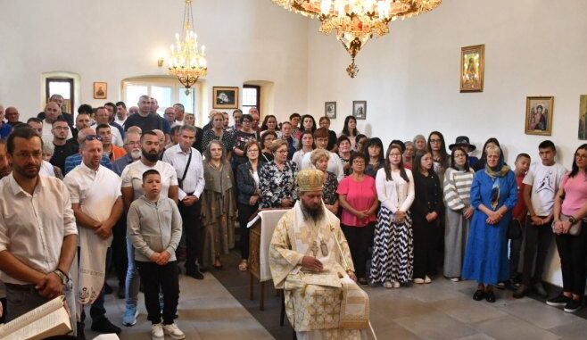 Nakon zaamvone molitve episkop Sergije blagoslovio je slavski kolač i koljivo, a ovogodišnji svečar bio je Branko Radulović.